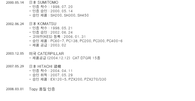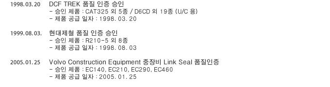 중장비 트랙링크씰 사업부문